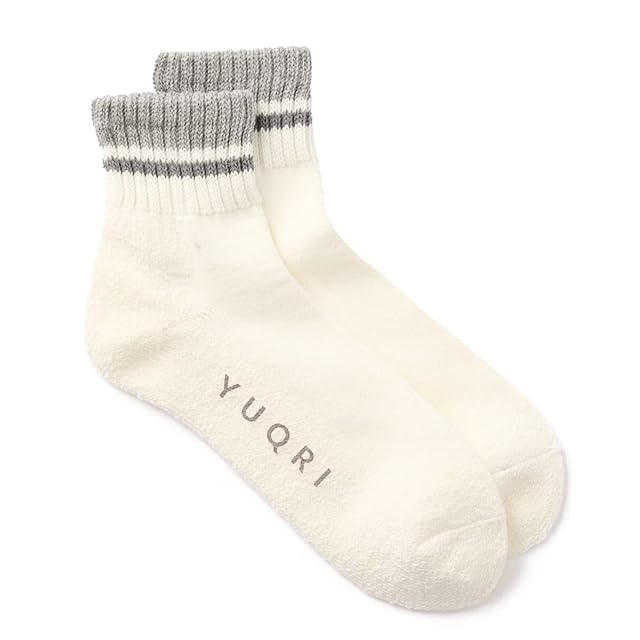 [YUQRI] [ユクリ] comfy half pile rib line コンフィハーフパイルリブライン 「 抗菌防臭・消臭・制菌」ソックス 靴下 メンズ 男性 ホワイト 25~27㎝