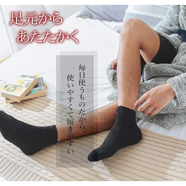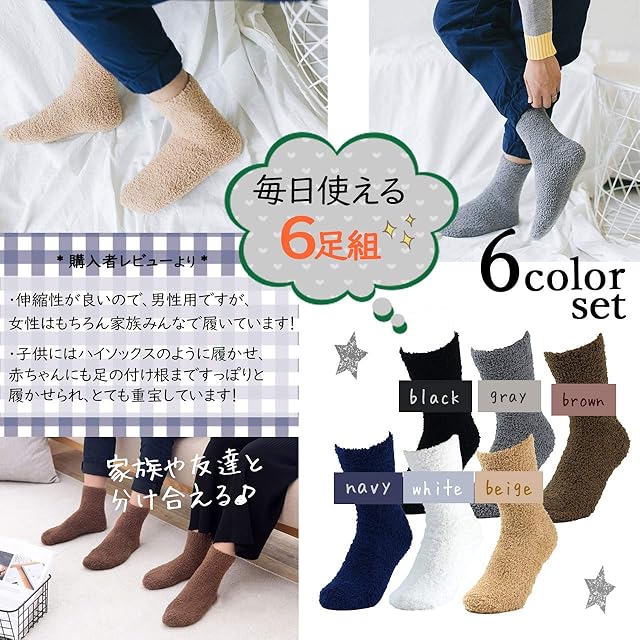 [アクアランド] もこもこ メンズ 靴下 ソックス あったかい ルームソックス 重ね履き 毛糸 カシミア 配合 6足組 (ミックス)