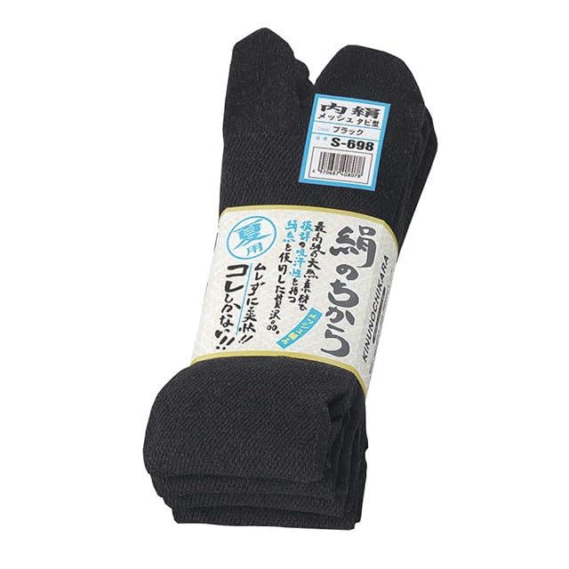 おたふく手袋 絹のちから メッシュ タビ型 4足組み ブラック S-698