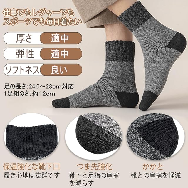 MOSOTECH 居心地の良いウール ソックス メンズ 防寒コレクションは、男性の冬の暖かさのニーズに合わせて設計されています - 厚く、暖かく、柔らかく快適で、寒い冬でも足を暖かく保ちます-メンズ冬用サーマル用の暖かいソックスは、湿気を逃がし、臭いを取り除く高品質のウールブレンドで作られています- 各メンズ暖かいソックスはテリーで設計されており、厚いクッションを提供するだけでなく、足の周りに暖かい空気を包み込み、つま先が冷たいことを心配する必要はありません快適でファッショナブルな冬用ソックスをお探しなら、MOSOTECH 厚手の男性用冬用ソックスが最適ですMOSOTECH メンズ ウィンター ソックスは、高品質の保温素材、柔らかく厚いインナーとバージョンのデザインで作られており、最高の快適な着用体験を提供します柔らかく快適な足の感触、日常活動中に足を暖かく保ち、さまざまなスタイルであなたを飾るためのさまざまな色があります 快適でファッショナブルな冬用ソックスをお探しなら、MOSOTECH メンズ サーマル ソックスをお選びください高品質の衣類素材で作られた、非常に柔らかく厚みのあるインナーループパッドのデザインは、柔らかくて軽く、快適で暖かく、秋や寒い冬でも一日中足を暖かく快適に保ちます 同時に、突然の衝撃の際の衝撃保護を提供し、寒い冬に備えます