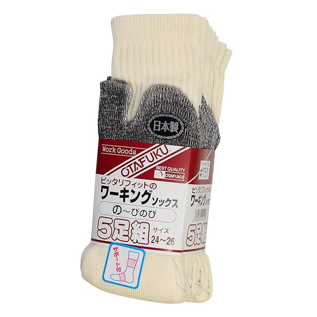 おたふく手袋 靴下 ワーキングソックス [タビ型 日本製 サポート付] #751 キナリ色 24~26㎝ 【5足組】 | AVENIR