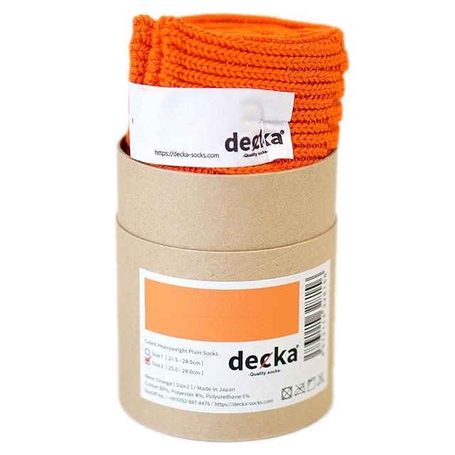 デカ decka ヘビーウェイトプレーン リブソックス Cased heavy weight plain socks de-01 (Neon Orenge, Mens)