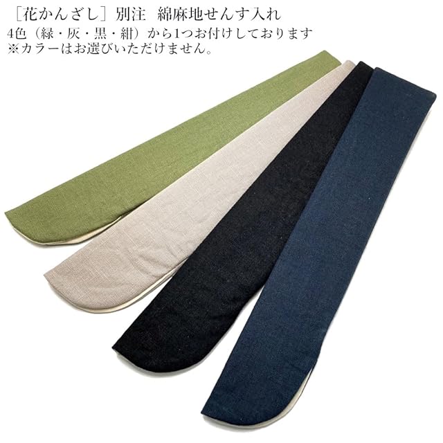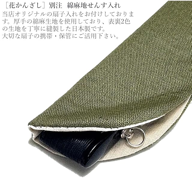 【オリジナル扇子袋プレゼント】携帯に便利な扇子袋をお付けしております、しっかりと厚みのある上質な綿麻生地を使用した日本製、当店[花かんざし]オリジナルの扇子入れです。