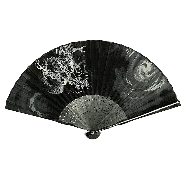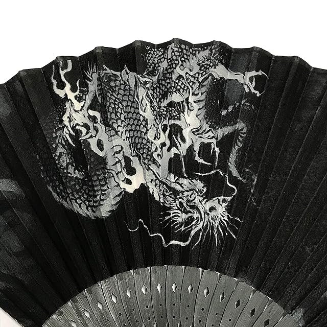 【特徴】大き目サイズ 大風量 和風 和柄 龍神 ドラゴン柄 黒色 男性用 紳士 メンズ 扇子セット 扇子入れつき