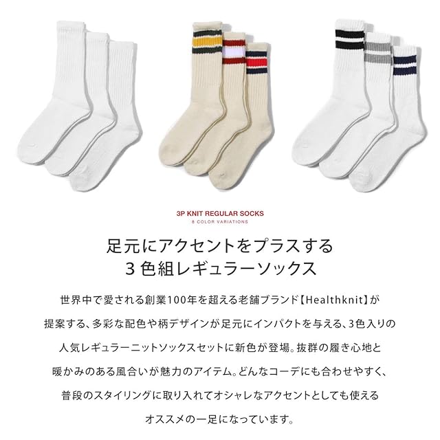 [ヘルスニット] Healthknit 3Pソックス Regular(レギュラータイプ) 191-3-15 106シンカーソリッド FREE