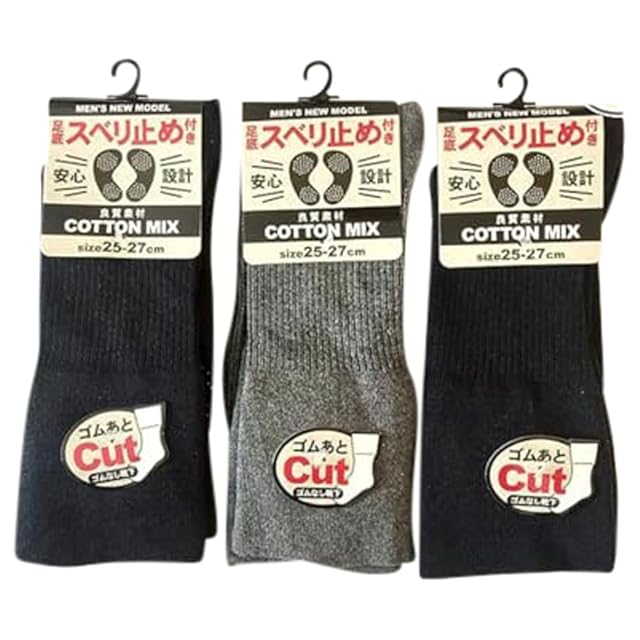 ソックス メンズ 足底 すべり止め付 靴下 紳士 綿混 口ゴムなし 25-27cm 3足セット(色はお任せ)E06
