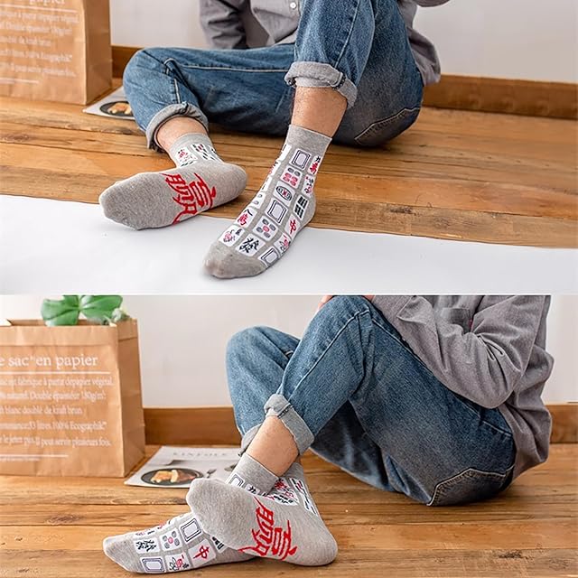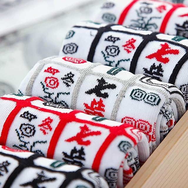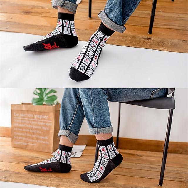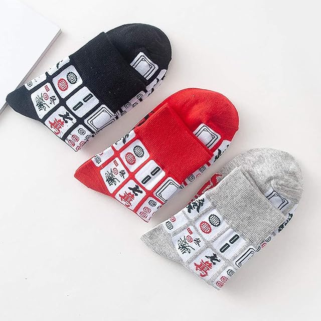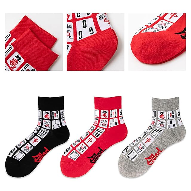 [Bocotojp] 厚手ソックスショートソックスファッション 靴下カップルソックス麻雀柄 靴下 メンズ 中厚手 春夏秋冬 男女兼用 ソックス、3色、3足セット マルチカラー Free Size