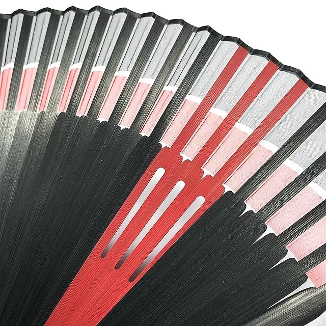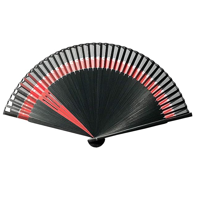 [花かんざし] 扇子 メンズ 扇子セット シルク扇子 ダブル 黒 大き目 22cm せんす Lサイズ 高級 紳士用 扇子入れ 扇子袋付き [6057 ダブル] (レッド)
