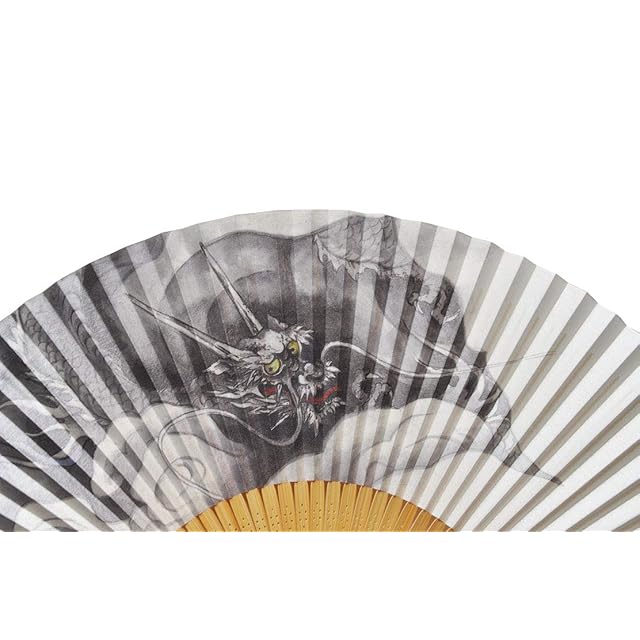 ・勇ましい龍柄がプリントされた紳士用扇子です・骨は白竹を使用しています・裏面は白無地です・要のお色は製造時期により異なる場合がございます・お土産にも最適です・和紙部分:日本製、骨部分:中国製・箱に入れて発送致します