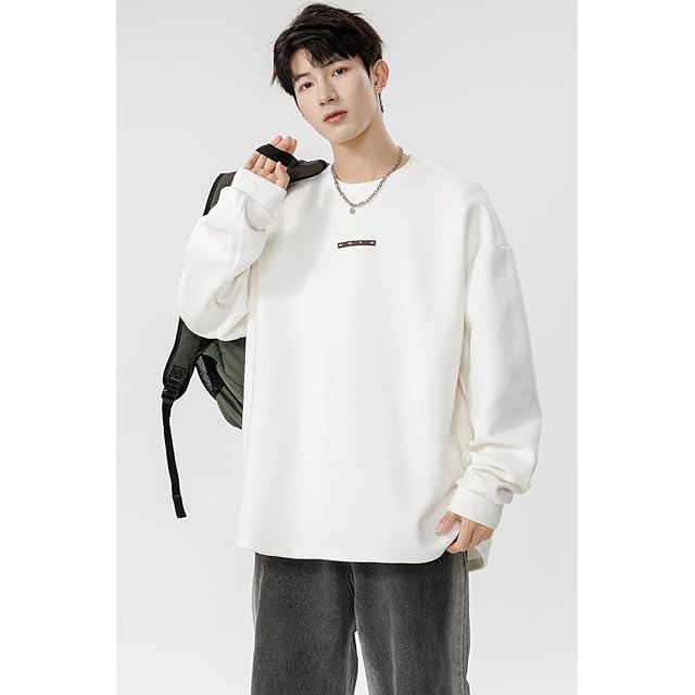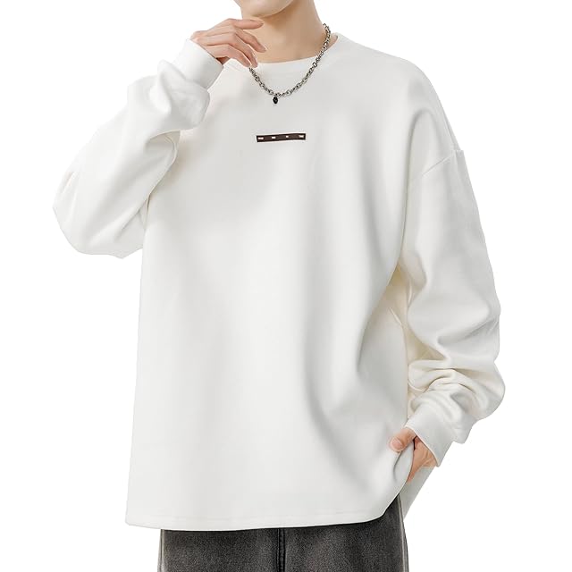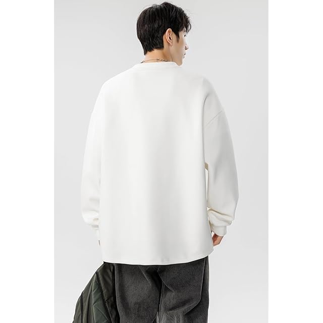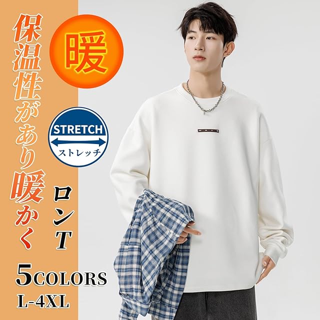 [Fasshonrida] ロングtシャツ メンズ 長袖tシャツ 暖かい ティーシャツ 秋冬服 トップス 伸びる ドラロンライク 保温 厚手 ろんてぃー かっこいい 無地 ロンt ファッション てぃーしゃつ 大きいサイズ 秋 冬 春 white XL