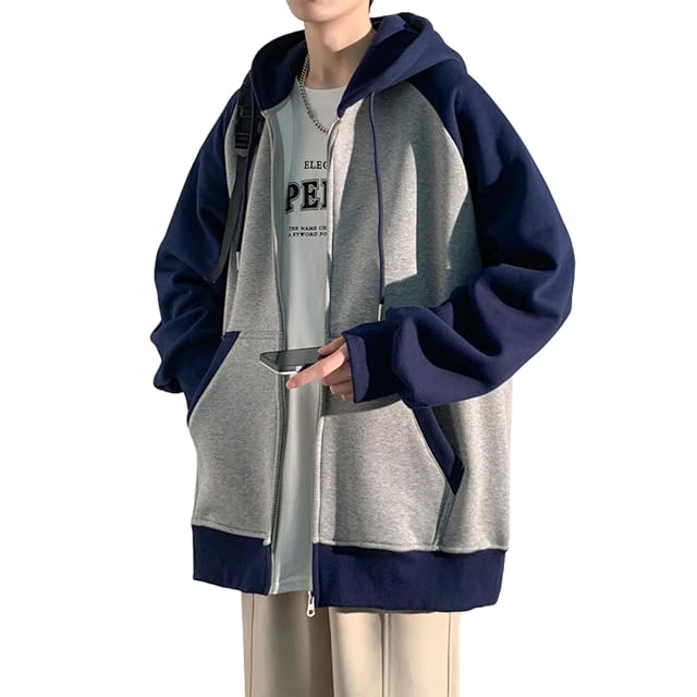 [Poperdision] ジップ パーカー 秋服 メンズ スポーツウェア 大きい サイズ おしゃれ 厚手 人気 ジャケット スポーツ フード 付き オシャレ トレーナー カジュアル カーディガン コート ジャージ 春秋冬服 ジップアップパーカー Gray blue-2XL