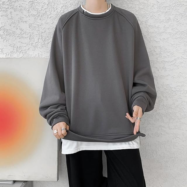 [Inkpoo] パーカー メンズ Tシャツ 長袖 秋服 無地 カジュアル おしゃれ 快適 プルオーバー 春冬 ゆったり スウェット 人気 ストリート トップス シンプル 大きいサイズ ストリート トップス Grey M