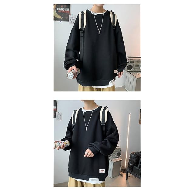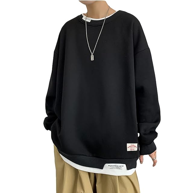 [foveitaa] トレーナー メンズ オーバーサイズ 無地 人気 プルオーバー トレーナー トップス カジュアル おしゃれ シンプル オシャレ ドロップショルダー ゆったり パーカー 男女兼用 春秋服 black 2XL
