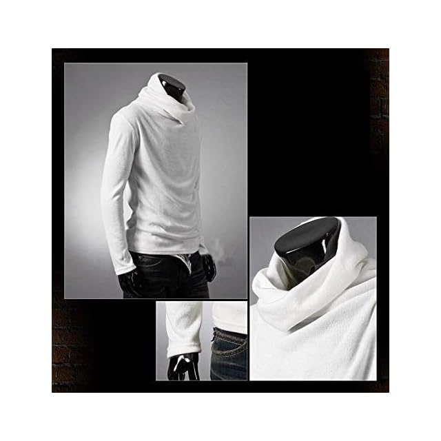 [クロム クレイン] メンズ 長袖 タートル ハイネック ロンT スタイリッシュ カットソー LPT016 (01.ホワイト,L)