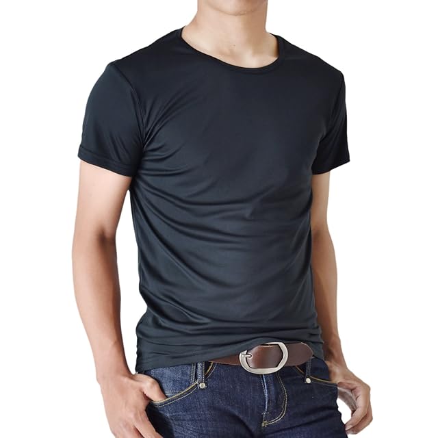 (アローナ)ARONA DRYストレッチ 接触冷感 Tシャツ 半袖 メンズ 吸汗速乾 無地 /M1/ A00ブラック LL