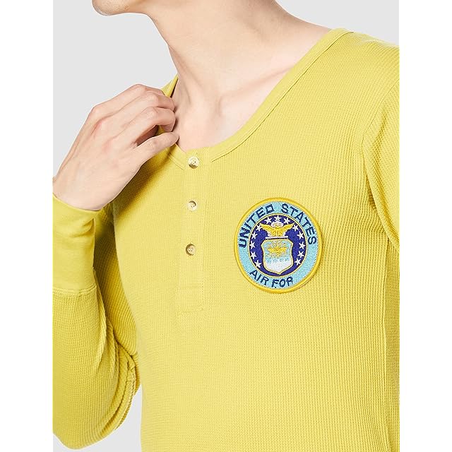 [エフスタイル] ヘンリーネックシャツ アメリカ空軍(USAF) 紋章ワッペン刺繍付 イエロー M