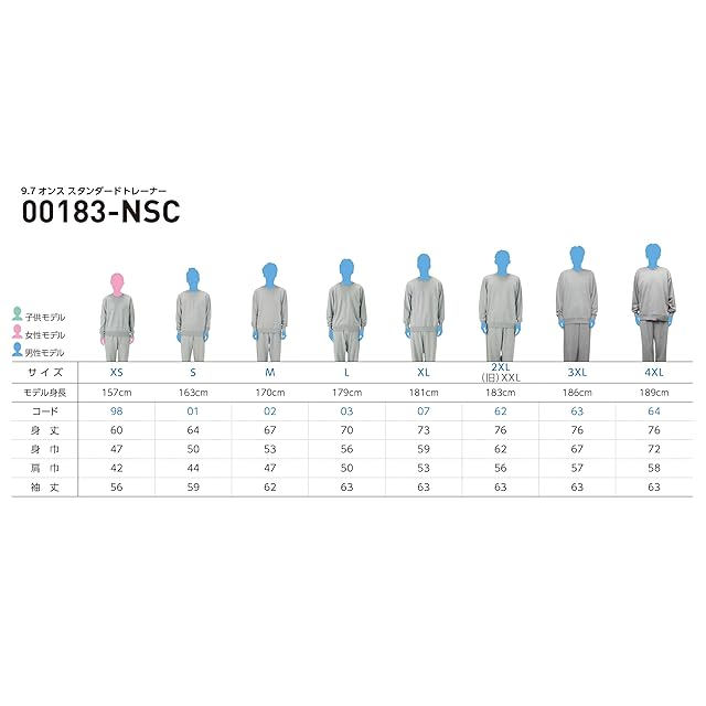 <サイズ> XS S M L XL 2XL 3XL 4XL