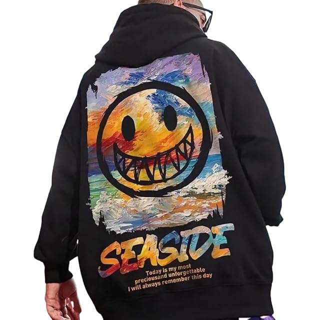 [エンプティオ] バックプリント フリースタイル 長袖 ストリート パーカー アウトドア メンズ オーバーサイズ 部屋着 ビックシルエット ポケット付き ワンポイントロゴ スウエットパーカー フィット フード付き スウェットパーカー トレーナー スウェット ルームウェア ロック フード バスケ ビッグシルエット ビッグ アジアン パンク ストリート系 マウンテン プルオーバー (2XL) ブラック