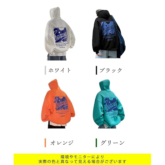 カラーはホワイト・ブラック・オレンジ・グリーンの4色。 色違いで揃えたくなるそんな1着です。大きいサイジングが好きな女性の方にもおすすめ。 お揃いコーデ・リンクコーデにもピッタリ。外出が楽しみになるアイテムです。