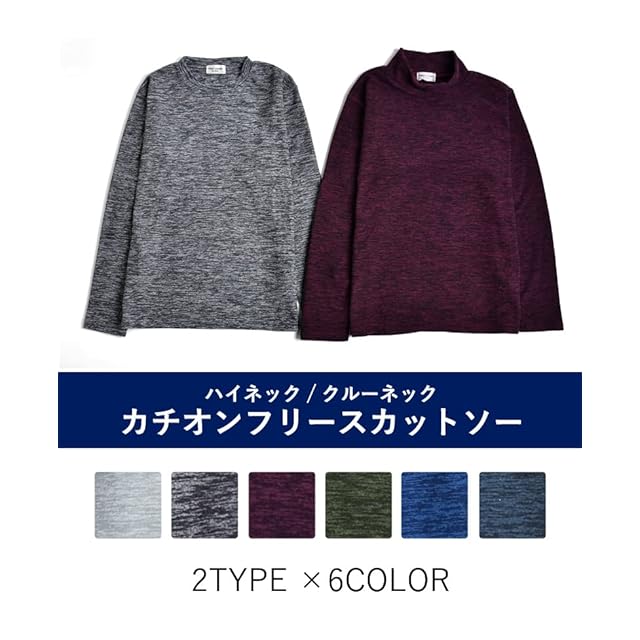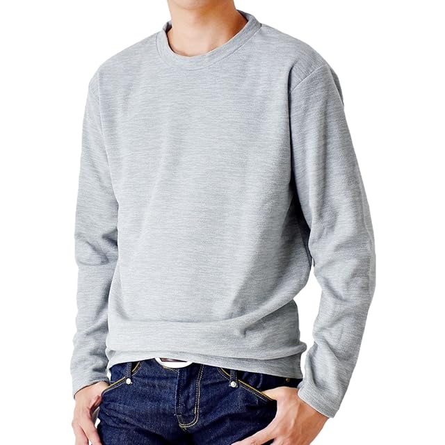 (アローナ)ARONA フリースカットソー 長袖Tシャツ ハイネック クルーネック メンズ/YC クルーネックB04グレー LL