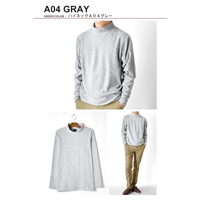 (アローナ)ARONA 暖かストレッチ フリースカットソー 長袖Tシャツ ハイネック クルーネック メンズ トレーナー/YC クルーネックB09チャコール L