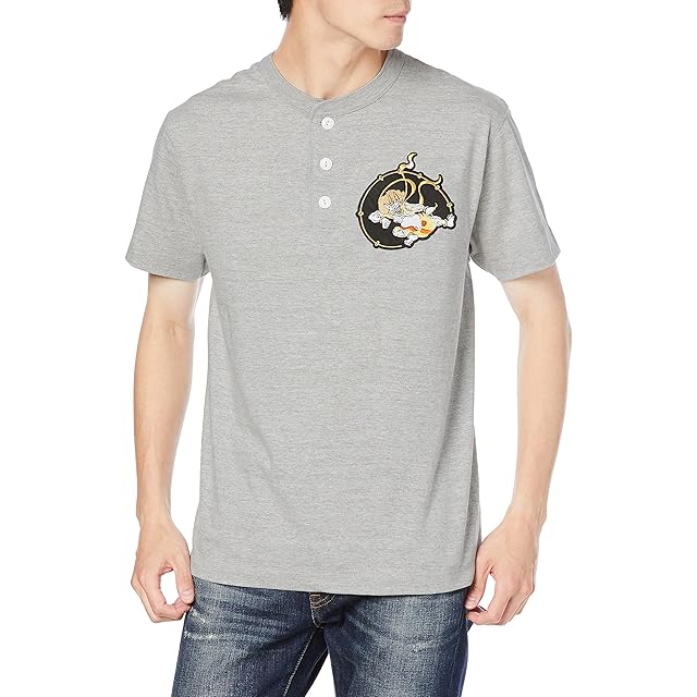 [エフスタイル] Tシャツ 雷神柄刺繍入り グレー S
