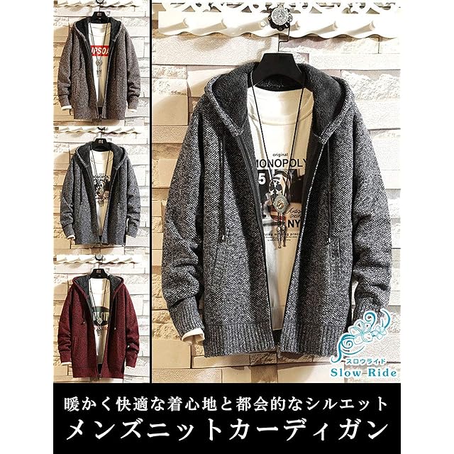 [スロウライド] メンズ 男性 男 男の子 男子 男児 紳士 ボーイズ 学生 高校生 中学生 小学生 大人 子供 子ども キッズ ジュニア カーディガン パーカー トレーナー セーター せーたー アウター ジャンパー ジャンバー ガウン ブルゾン 長袖 ニット 厚手 防寒 裏起毛 ゆったり 大きい 大きめ 大きな おおきい サイズ ルームウェア アウトドア 秋春 冬 冬服 韓国 灰色 グレー 2L