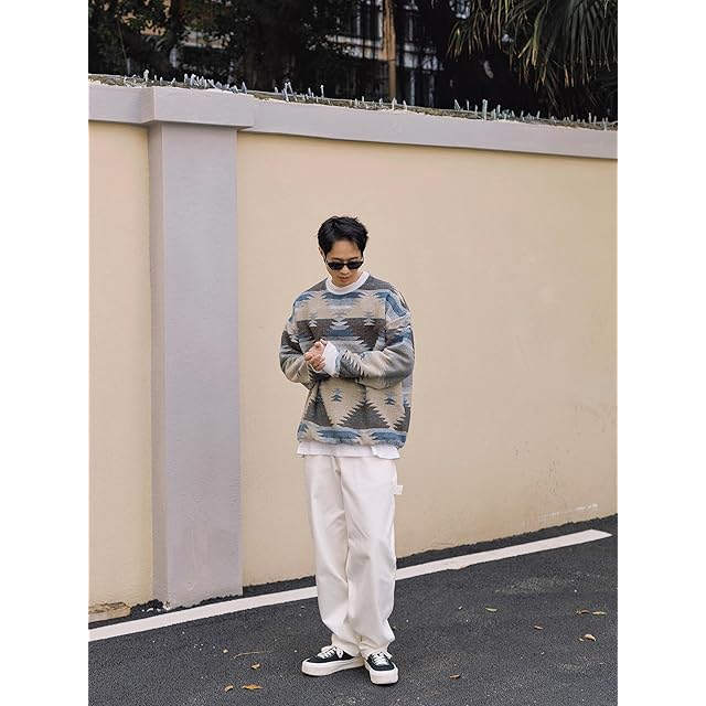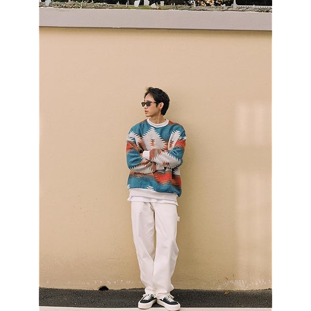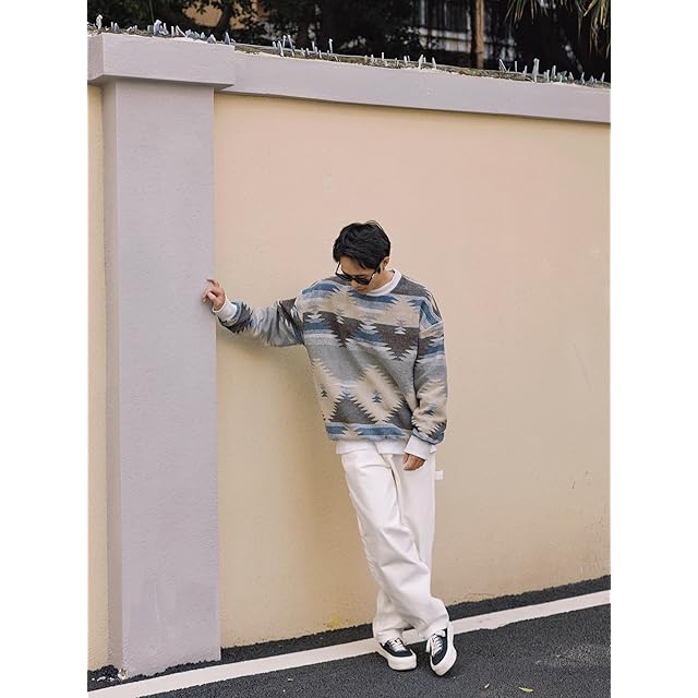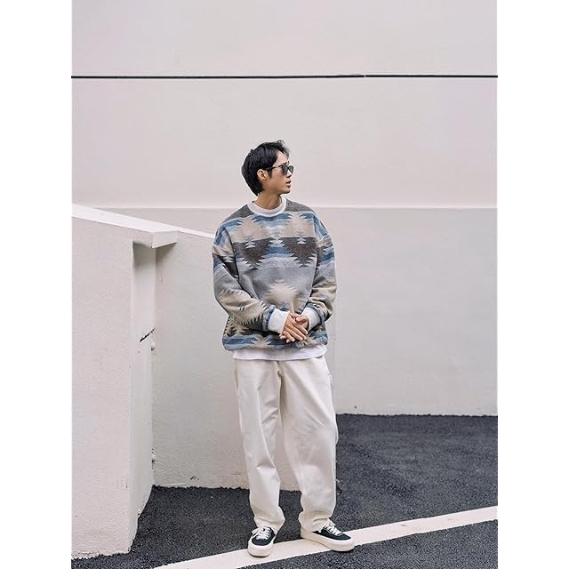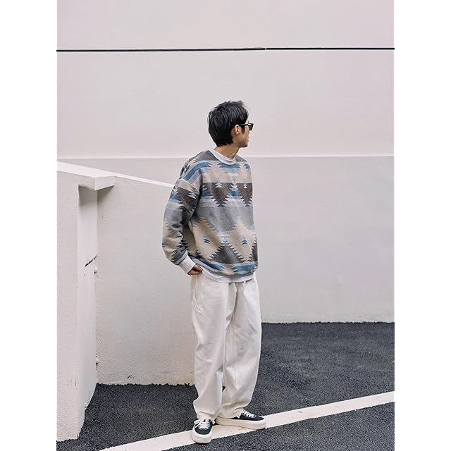 [CHANGE WELL] メンズ「2023AW」ストリート ファッション 厚手 プルオーバー 秋冬服 【ネイティブ柄】 長袖トレーナー (グレー, 2XL)