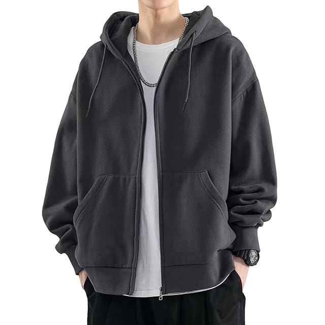 [JHIJSC] パーカー メンズ 秋冬 裏起毛 長袖 ジップアップ ゆったり フード付き 大きいサイズ (2XL, グレー)