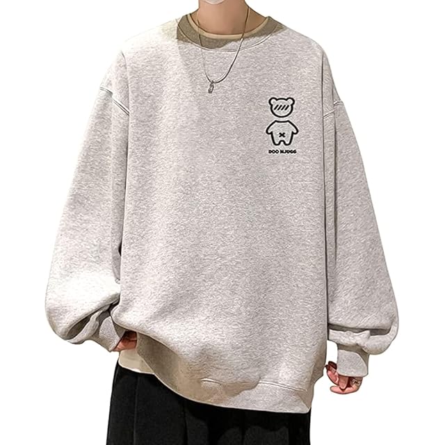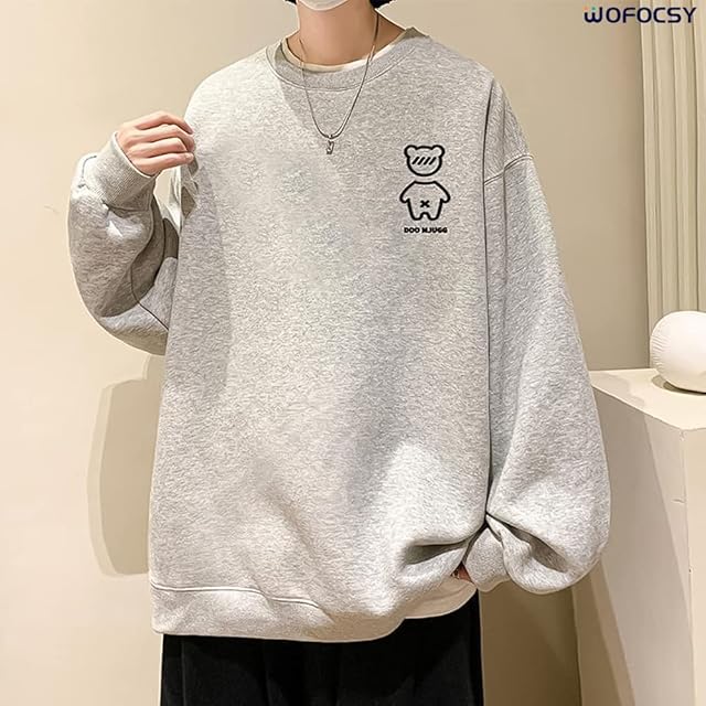 WOFOCSY メンズ トレーナー パーカー 長袖 丸首 無地 春夏秋 大きいサイズ カジュアル ゆったり おしゃれ 快適 人気 シンプル Tシャツ SY142 (2XL, グレー)