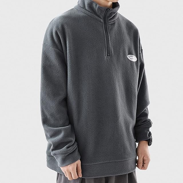 [Ruixi] ハーフジップ メンズ トレーナー フリース 長袖 パーカー 保温 トップス 軽量 ゆったり プルオーバー パッチワーク 暖かい ユニセックス 秋 冬 春 (グレー, 2XL) …