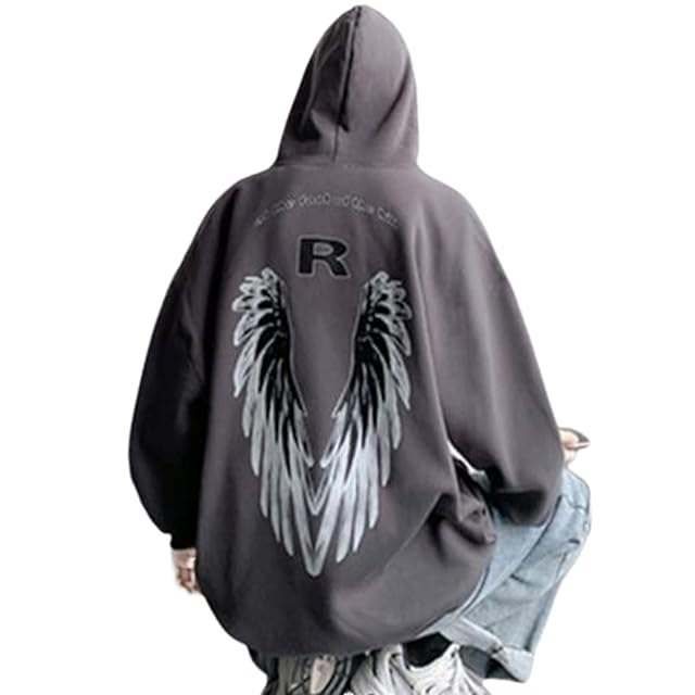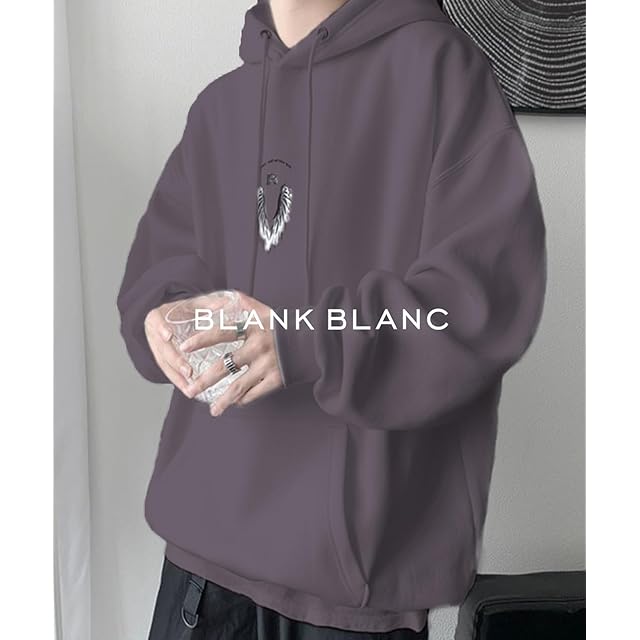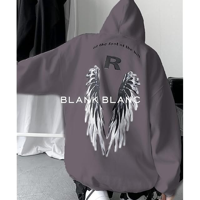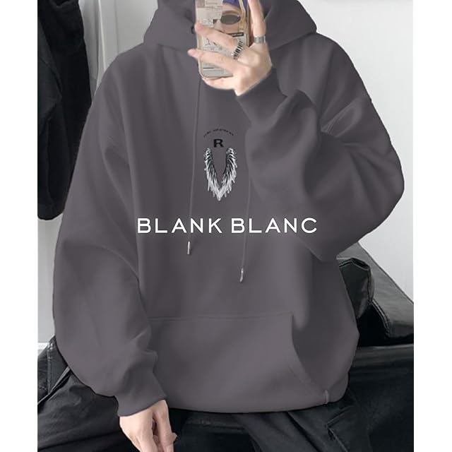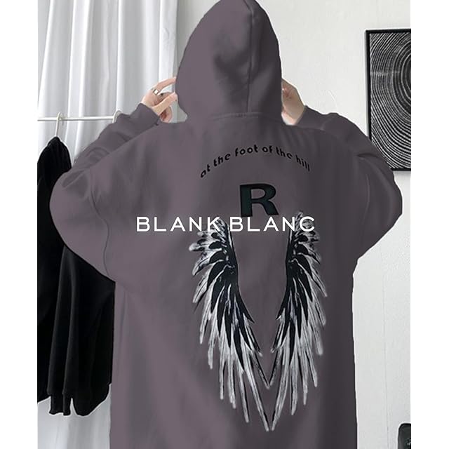 [ブランクブラン] パーカー フーディー ビックシルエット 羽 プリント ゆったり 秋冬 lサイズ l サイズ ストリート系 洋服 大人 お兄さん シンプル カジュアル ファッション ビッグシルエット 寝間着 長袖 フード ペア 服 プレゼント ギフト ダンス ストレッチ ランニング スポーツ 部屋着 ルームウェア フーディ バックプリント ロゴ トップス 灰色 グレー 3A-B05-GYL