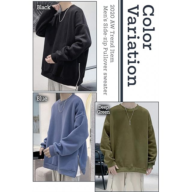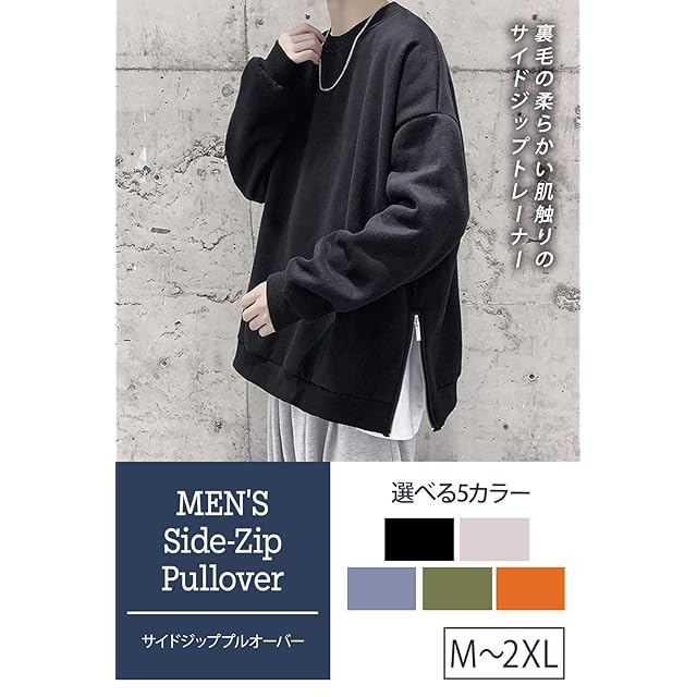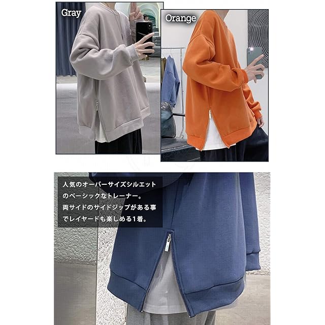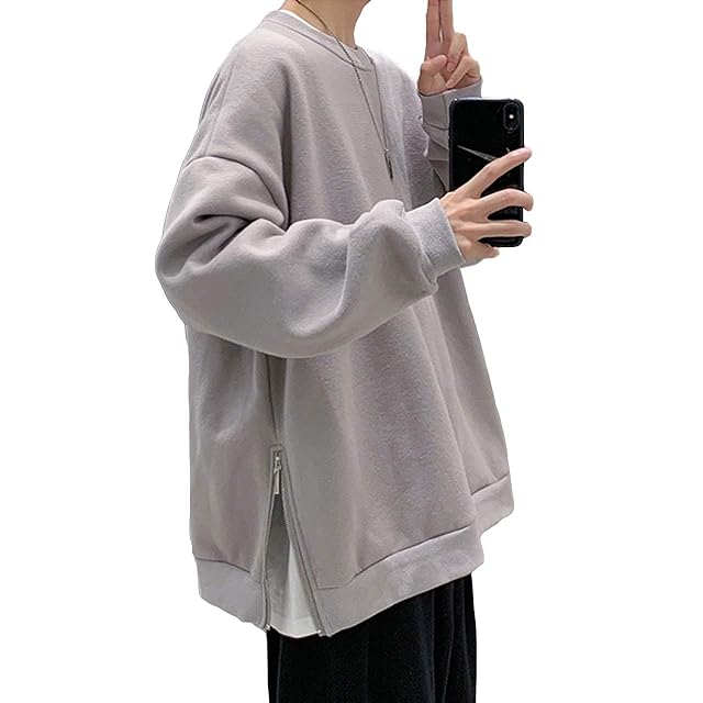 [リディーコロ] メンズ サイドジップ トレーナー ドロップショルダー ビッグシルエット オーバーサイズ 大きいサイズ ゆったり ルーズ 大人 ロンT 個性的 韓国 モテ服 インナー 流行り トレンド 厚手 秋服 秋物 秋冬 冬 冬服 冬物 秋 あったかい トレンドカラー 大きい 防寒 防風 トレンドトップス スウェット ジップアップ ファスナー ジッパー チャック グレー XL