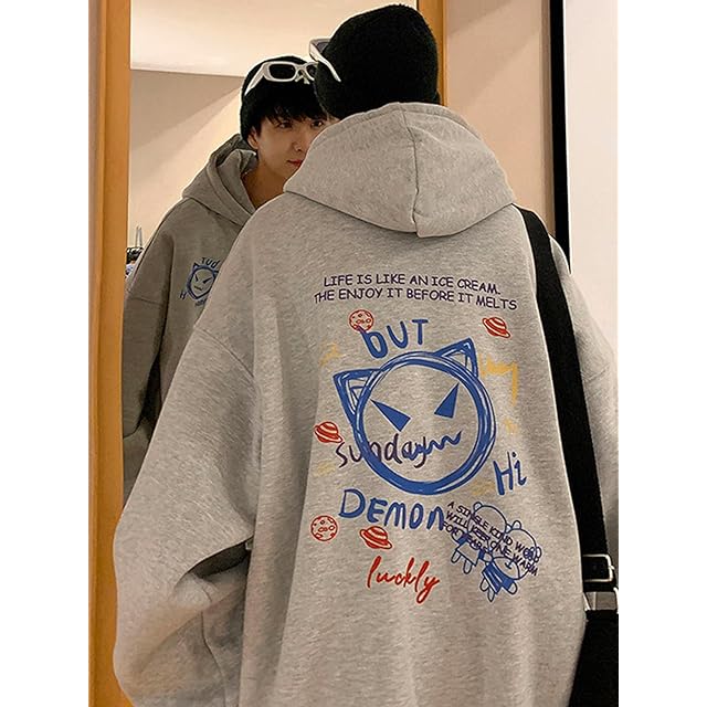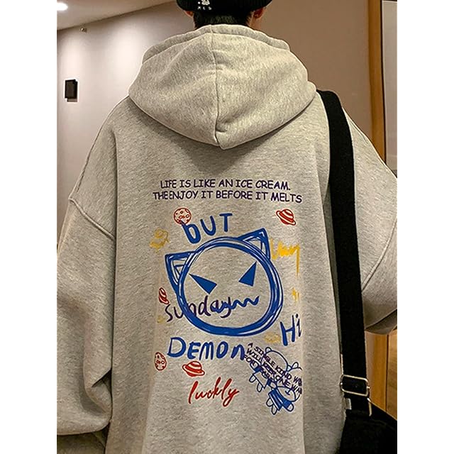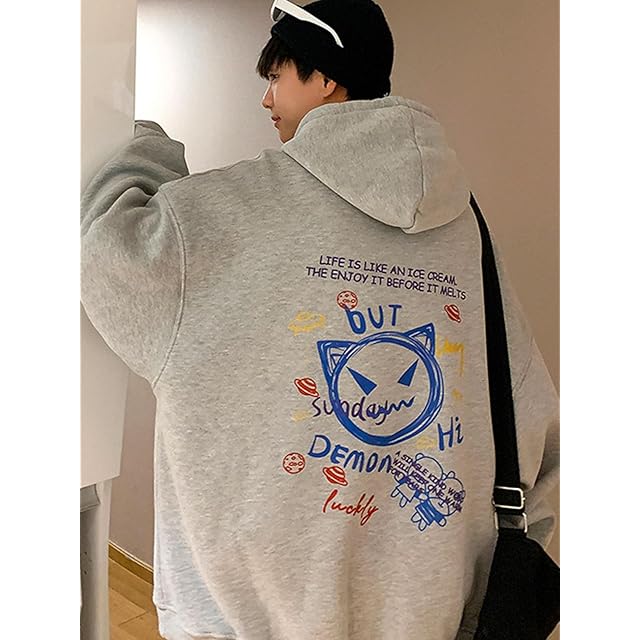 [Luxe Relax] 猫 アート プリント パーカー メンズ服 カジュアル スウェットシャツ 大人 裏フリース ヒップホップ ビッグシルエット秋服 オーバーサイズ トレッキング 秋用 春服 ストレッチ 起毛 秋 韓国ファッション ルームウェア トップス カジュアル 長袖 秋冬 ビジネス トレーニング カッコイイ プルオーバー メンズ 3A-L27-GYXL