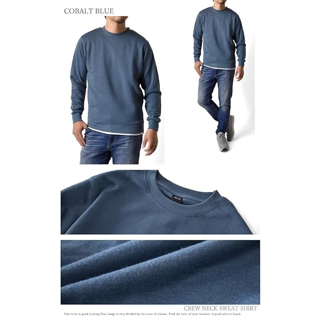 [アルージェ] スウェット トレーナー メンズ TC裏起毛 ストレッチ フリース起毛 防寒 クルーネック リブ / A2D / L コバルト
