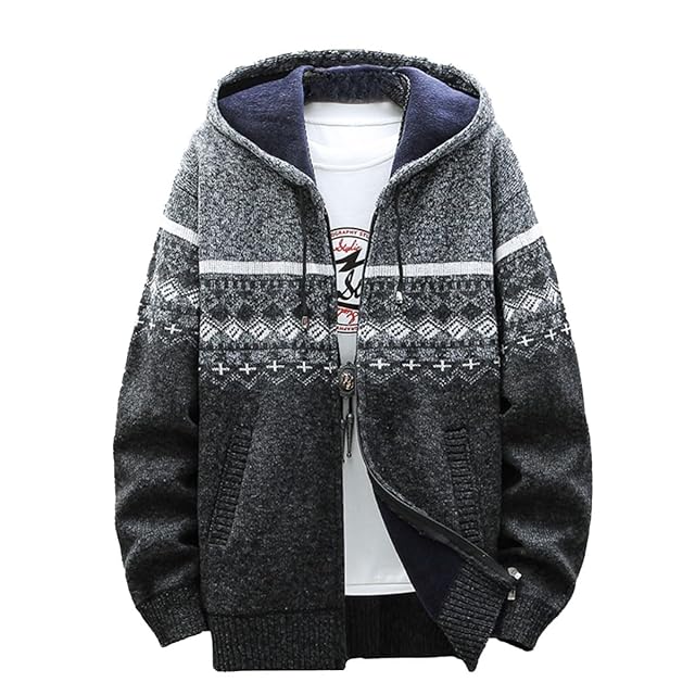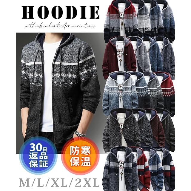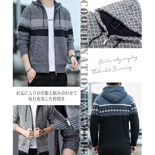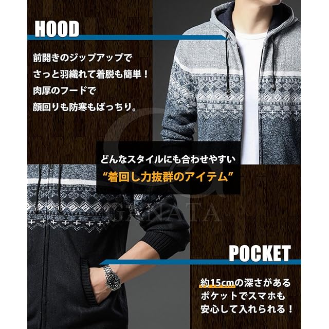 [ガナタ] ニットパーカー メンズ ニットフリース 裏起毛 防寒 フード付き ジップアップ アウター XL ダークグレー
