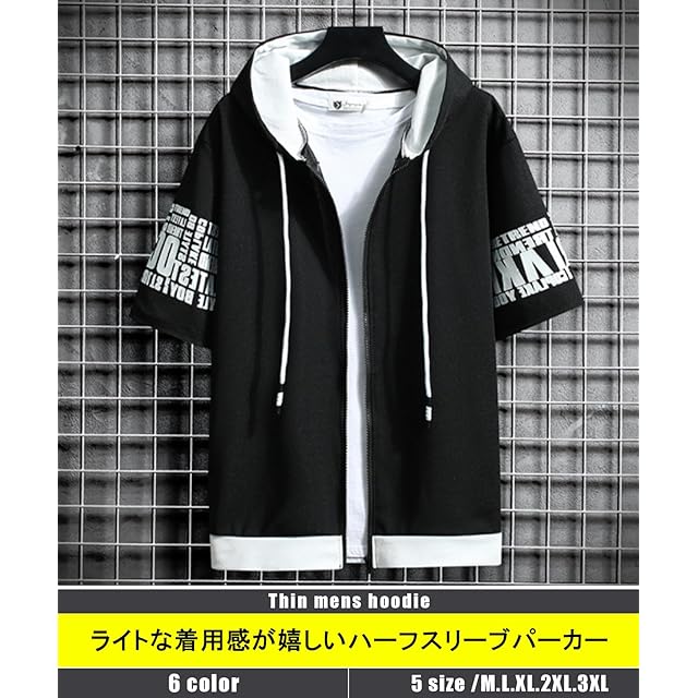 [ドアーズ] パーカー 半袖 ジップアップ フード付き 薄手 五分袖 重ね着 スウェット メンズ 大きい サイズ かっこいい ジップパーカー ワーク ワークウェア ルーム ルームウェア フード付きパーカー ユルイ 作業 作業服 作業着 作業用 私服 しふく わーくうぇあ 軽い バイカラー 大きめ ビッグサイズ おおきい だーくぐれー モータースポーツ ダークグレー 3A-D01-DG2XL