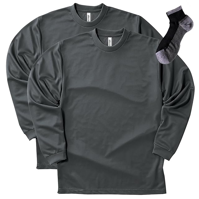 glimmer(グリマー) 長袖 4.4オンス ドライ ロングスリーブ Tシャツ メンズ 2枚組 Sportsソックスセット ダークグレー S