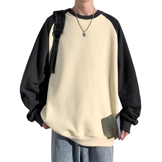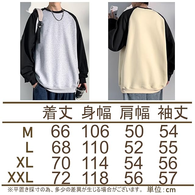 [ririka] ラグラン 袖 ビッグ シルエット オーバー サイズ ゆったり 大きい ベースボール スポーツ 裏 起毛 防寒 トレーナー スウェット メンズ (XXL, チャコール)
