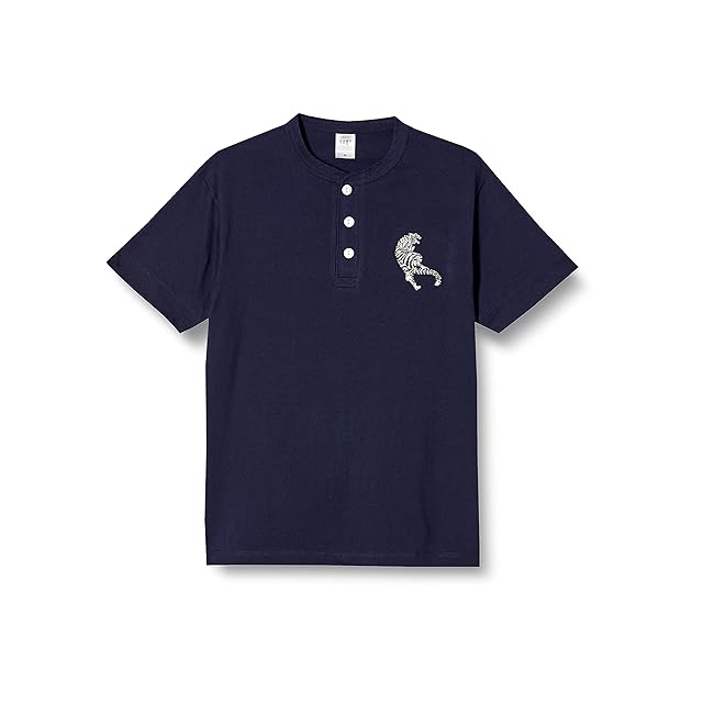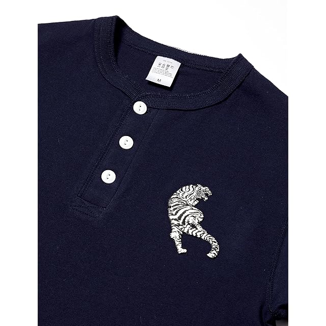 [エフスタイル] ヘンリーネックシャツ ホワイトタイガー刺繍入り メンズ ネイビー 標準