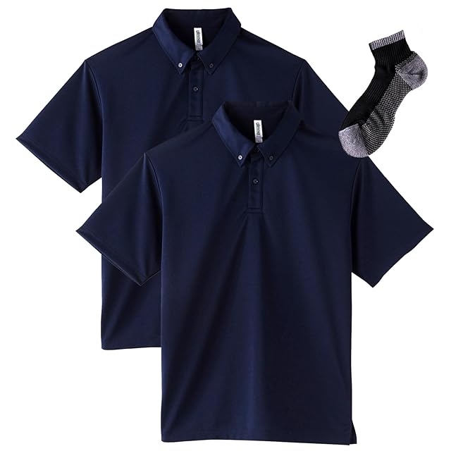 [グリマー] ボタンダウン ドライポロシャツ (ポケット無) 2枚組 Sportsソックスセット ネイビー M