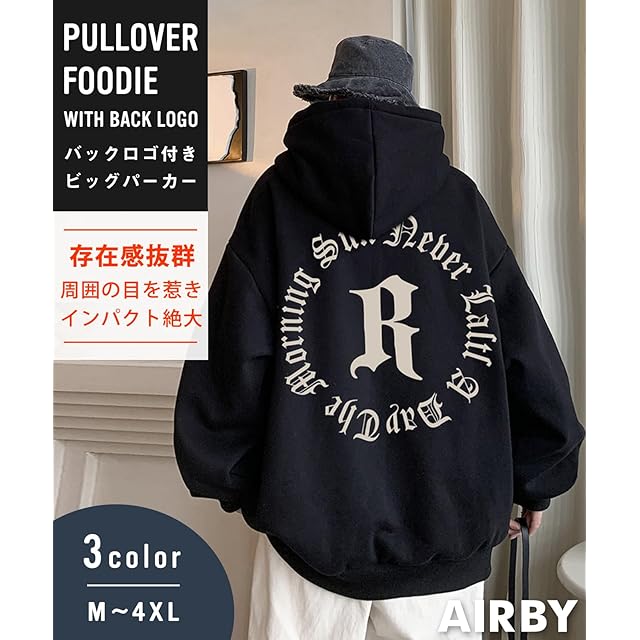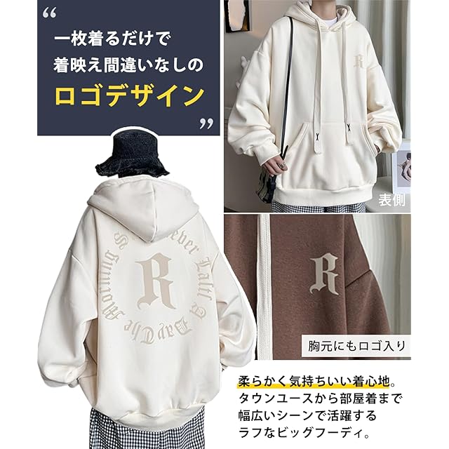[エアバイ] バック ロゴ パーカー カジュアル 厚手 長袖 秋 冬 プルオーバー ゆったり トップス メンズ フード フーディ バックプリント パジャマ ビジネス スポーツ オフィスカジュアル ストリート ツートン ワイドスリーブ オーバー ストレッチ クール スマート 体型カバー 無地 韓国 学生 作業着 普段着 重ね着 やわらか ゆるい ふんわり あったか ブラウン 3A-A29-BR2XL