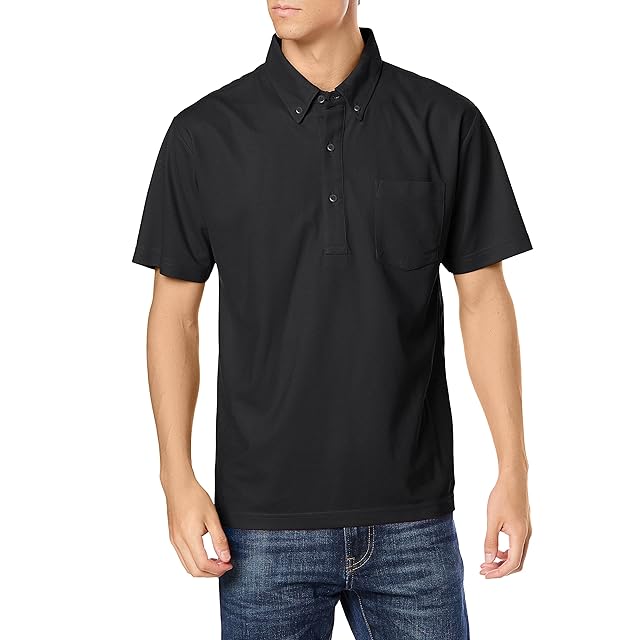 [エフスタイル] ポケット付き ボタンダウンポロシャツ F-SD020749 ブラック XS
