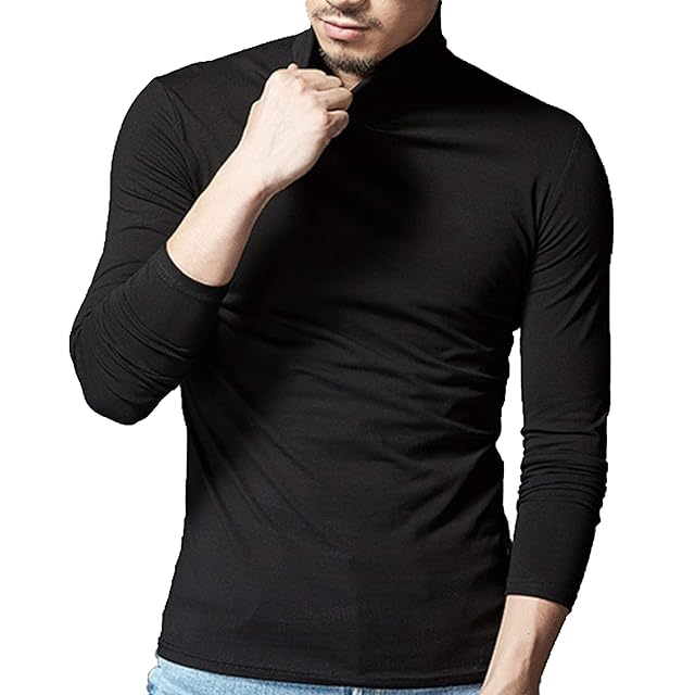 [ユニベイズ] タートルネック メンズ 長袖 Tシャツ インナー 薄手 綿 ハイネック (2XL, ブラック)