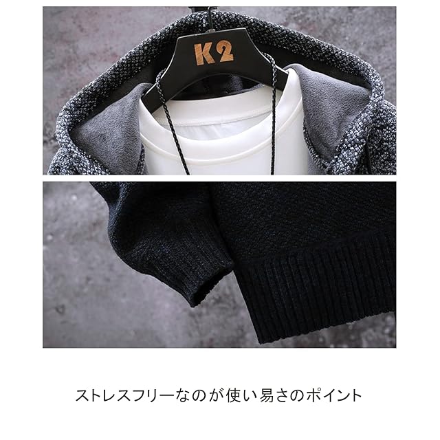 【冬場でも暖かいニットデザインパーカー】カジュアルなパーカーではあるもののニットのような網目であったかくインナーとしてもアウターとしても使える万能パーカー。スポーティーなシンプルパーカーと違って秋冬の質感であったかい印象を与えてくれるのと着心地も窮屈な感じはないリラックスウェアの一面もある優秀パーカー。 学生から社会人まで年代を選ばず、どなたでも使いやすいように柄も落ち着いているデザインのアイテムです。パーカーですと定番でトレンドに左右されないベーシックな作りはマストなのでジップで脱ぎ着もしやすく、デザインもシンプルでアウターやインナー、ボトムスも合わせやすいところは嬉しいポイントです。前開きのジップアップパーカーなので、もちろん脱ぎ着はスムーズです。お出かけやご旅行の際にも荷物にも脱ぎ着がしやすいと便利なのもポイントですよね。