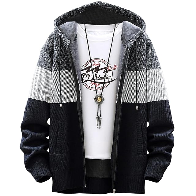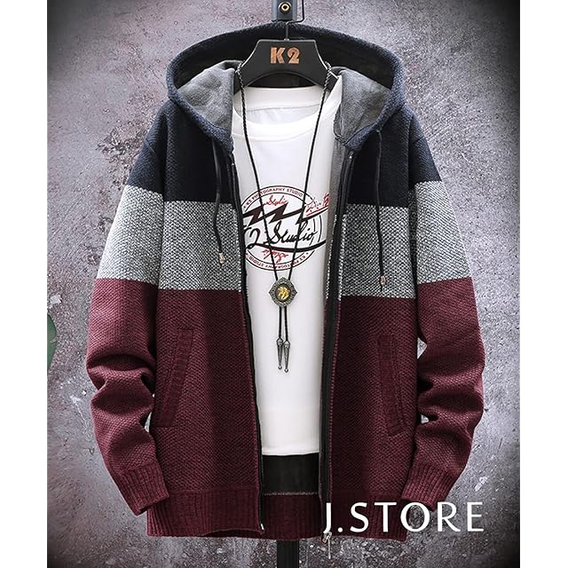 [ジェイストア] パーカー メンズ 大きいサイズ 長袖 ニット トップス 羽織 前開き ジップ バイカラー 1A-J31 ブラック 2XL
