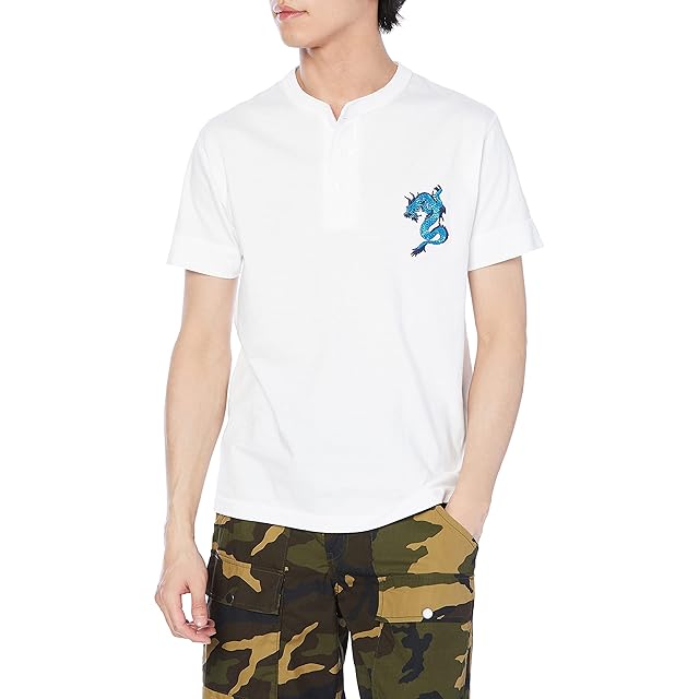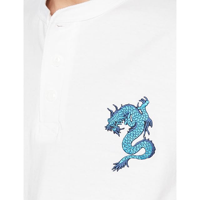 [エフスタイル] ヘンリーネックシャツ ブルードラゴン刺繍入り メンズ ホワイト 標準
