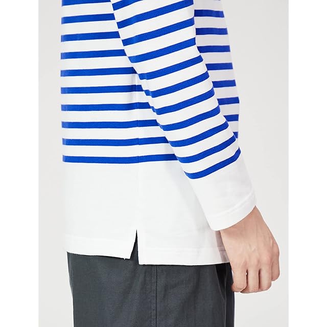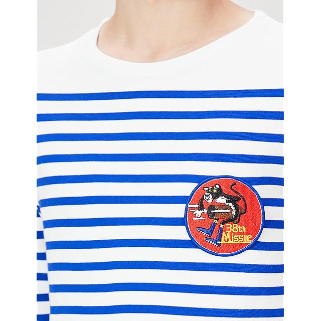 [エフスタイル] Tシャツ フランス軍タイプ ボーダー(ホワイト×ブルー) 長袖シャツ ミリタリーワッペン ホワイト×ブルー38MISSILE(159) L