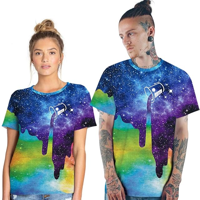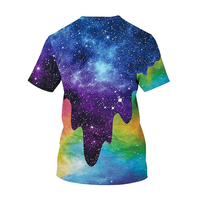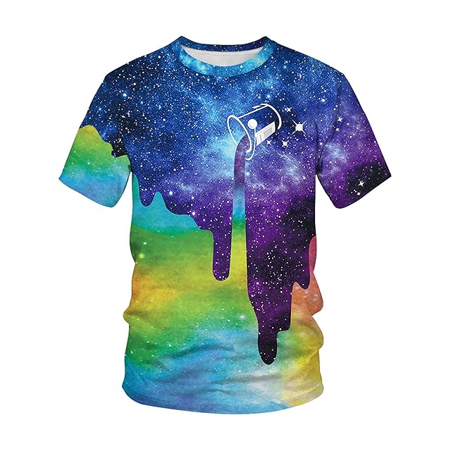 [LIDADA] メンズ Tシャツ 丸首半袖 星空柄 プリント 柔らかい 量軽 速乾 原宿系 お揃い ストレッチ 冷感カットソー 夏 L