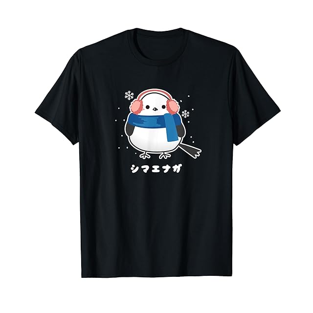 シマエナガ 鳥 野鳥 雪 ふゆ マフラー 耳当て 北海道 雪の妖精 イラスト かわいい Tシャツ